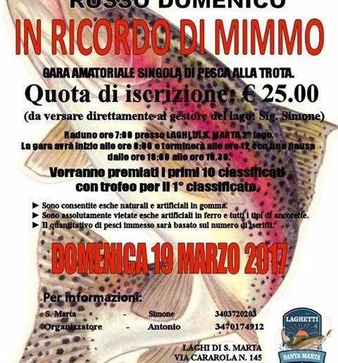 Ragazzi vi proponiamo questa "pescata tra amici" gara, per ricordare un nostro amico pescatore Mimmo e per passare una domenica diversa sempre e comunque nel segno del divertimento e facendo una delle cose che più ci piace, cioè PESCARE!!!