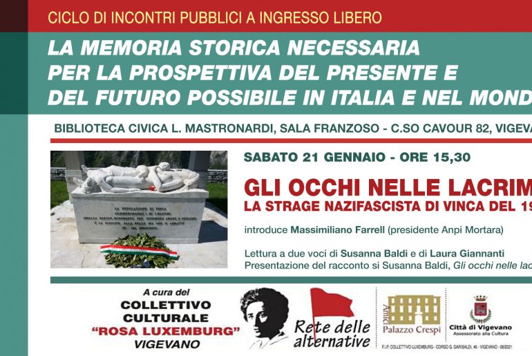 Per il ciclo “LA MEMORIA STORICA NECESSARIA PER LA PROSPETTIVA DEL PRESENTE E DEL FUTURO POSSIBILE IN ITALIA E NEL MONDO”, il Collettivo “Rosa Luxembourg” di Vigevano, propone il primo incontro: