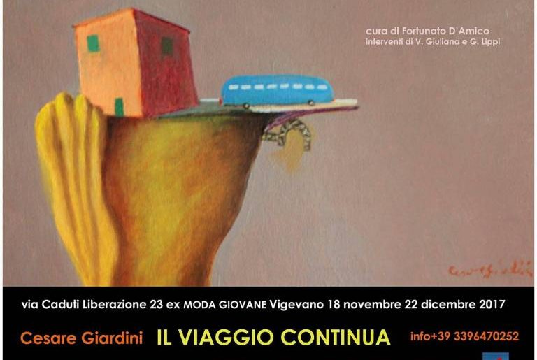 La mostra, a due anni di distanza dall’esposizione nella strada sotterranea del castello di Vigevano intitolata “Cuochi d’Italia”, quadri esposti successivamente a Roma nell’Archivio Centrale dello Stato, riprende quel tema con nuove opere e soprattutto, presenta al pubblico una serie di nuove tele e studi su carta recenti sulla tematica del viaggio, soggetto centrale della poetica di Cesare Giardini.