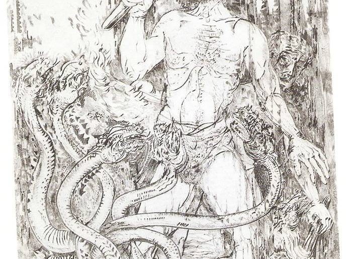 Nelle immagini, che evocano le gesta eroiche di Ercole, i segni lasciati dal bulino si intrecciano con le morbidezze conferite invece alla punta secca dalle "barbe", conservate come elemento espressivo capace di trattenere l'inchiostro, ciò determina gli aloni soffusi che in fase di stampa appaiono circondare i tratti stessi.