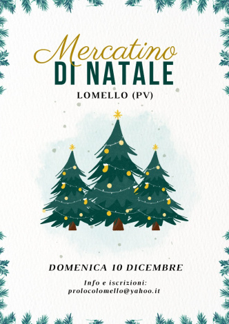 | Si svolgerà domenica 10 dicembre il tradizionale mercatino di Natale a Lomello, presso l’ex oratorio di San Rocco, dalle 10 alle 18.