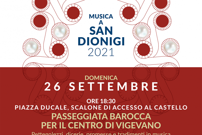 Dal 12 settembre al 3 ottobre, per quattro domeniche, il Centro di Musica Antica organizzerà la stagione Musica a San Dionigi, con quattro concerti pomeridiani e una suggestiva passeggiata barocca attraverso il centro di Vigevano.