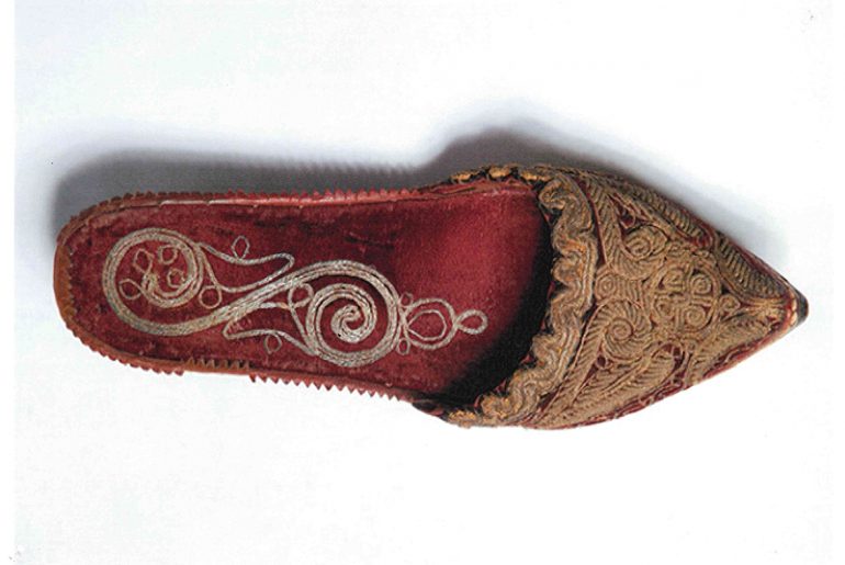 La signora Lia Perelli Gemelli, di origine vigevanese ma da molti anni residente ad Arona, ha deciso di donare alla propria città un paio di antiche pantofole da donna, di splendida fattura e presumibilmente risalenti al XVI/XVII secolo, in prezioso tessuto arricchito da leggiadri decori in filo d’oro.