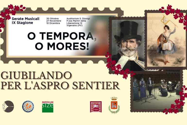 Dall’opera lirica, passando per la musica strumentale, fino alla canzone popolare, il primo appuntamento della IX Stagione delle Serate Musicali – “Giubilando per l’aspro sentier” – è dedicato al ruolo innovativo che la Musica rivestì – durante il periodo risorgimentale – nella capacità di destare le coscienze e muovere all’unità tutti gli italiani: la Musica infatti non fu sottofondo né comparsa, ma vera protagonista nella narrazione dell’identità sociale e culturale e delle aspirazioni di unità dell’Italia.