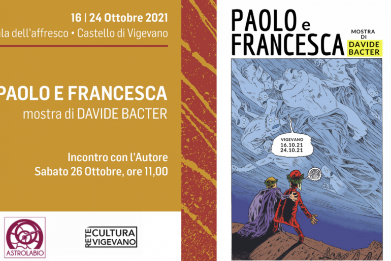 In mostra le tavole originali del fumetto realizzato con Claudio Ciabochi, editore per il museo di Gradara, sulla tragica vicenda amorosa di Paolo e Francesca, i lussuriosi protagonisti del V Canto della Divina Commedia di Dante Alighieri.