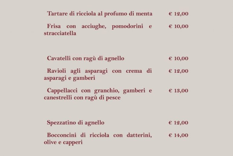 Menu di Pasqua