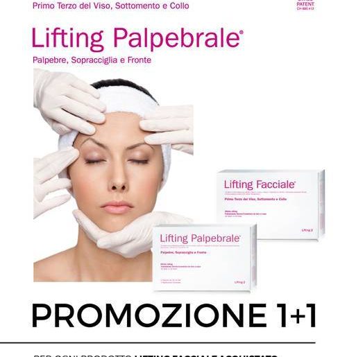 Lifting Facciale e Palpebrale sono due preparati dermo-cosmetici ad effetto lifting per la lassità cutanea che favoriscono la riduzione del cedimento dei tratti del viso (rispettivamente zona inferiore e superiore) e del collo per ritrovare contorni più tesi e sollevati.