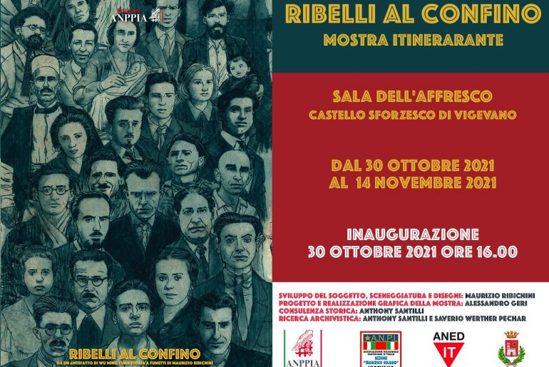 L’Anpi di Vigevano per ricordare che nel Castello Sforzesco il 21 ottobre del 1943 veniva fucilato di Leoni Giovanni, mentre il 6 ottobre del 1944 vengono fucilati i partigiani della Brigata Leoni Salvatore Frasconà, Carlo Gazzo e Giovanni Profili, offre ai cittadini la visione di questa mostra che, in alcune pagine del libro/fumetto di Ribichini, viene descritto sinteticamente cos’era il confino di polizia sotto il fascismo.