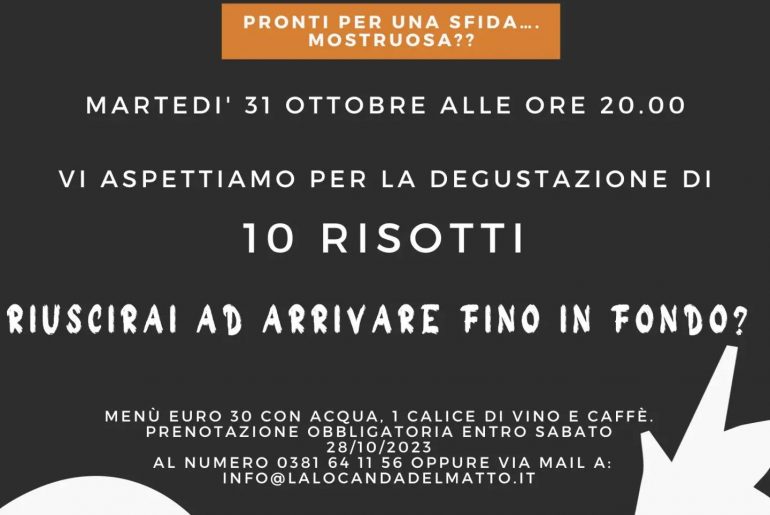 PRENOTAZIONE OBBLIGATORIA ENTRO IL 28/10: info@lalocandadelmatto.it 0381 641156