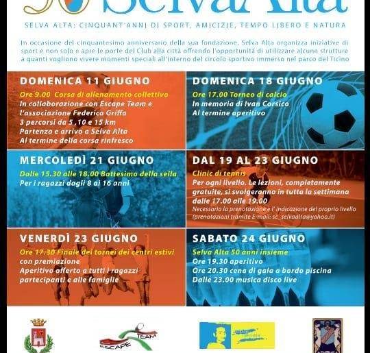 In occasione del cinquantesimo anniversario della fondazione di Selva Alta, il prestigioso circolo sportivo vigevanese organizza un ampio programma di iniziative mirate a celebrare lo speciale compleanno aprendo le porte del club a quanti, non soci, vogliano vivere un’esperienza di sport e tempo utilizzando alcune delle sue strutture.