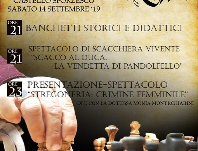 Alle ore 21.00 si svolgerà lo spettacolo “SCACCO AL DUCA. LA VENDETTA DI PANDOLFELLO”.