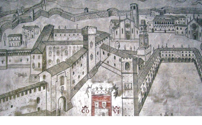 L’edificio, addossato al lato destro della chiesa di s. Dionigi, è giunto sino a noi pressoché invariato nella sua originaria struttura quattrocentesca.