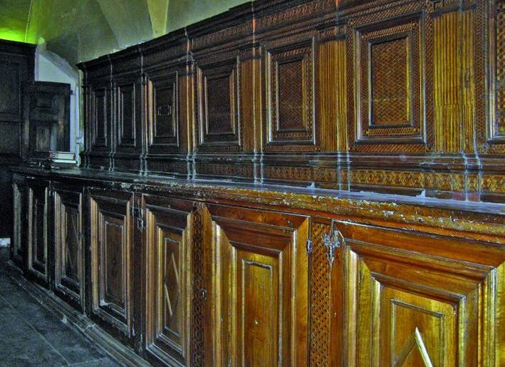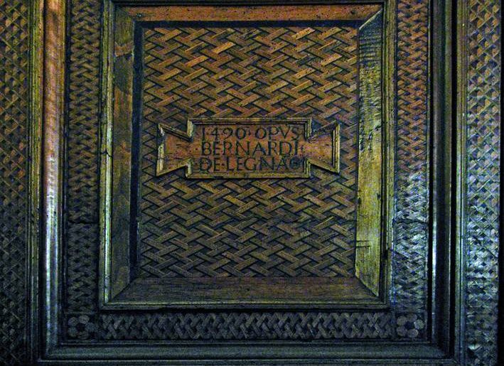 Ultimo elemento notevole dell ‘apparato storico-artistico della chiesa di s. Pietro Martire si trova visitando la sacrestia, dove si notano i quattrocenteschi mobili decorati ad intarsio geometrico (1490) firmati dal maestro Bernardo da Legnano.