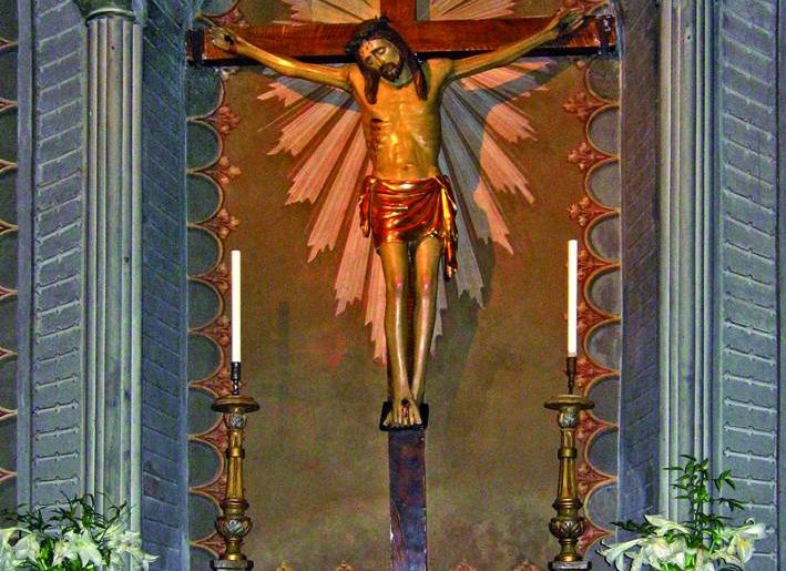 Ai piedi dell’altare maggiore una grata segna la presenza di un sepolcreto che conserva le spoglie di alcuni frati priori domenicani e del primo parroco di s. Pietro Martire.
