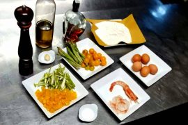 Tagliatelle all’uovo con asparagi, pomodorini e code di gamberi Iniziamo con la giusta descrizione del piatto: “Tagliatelle di Pasta…